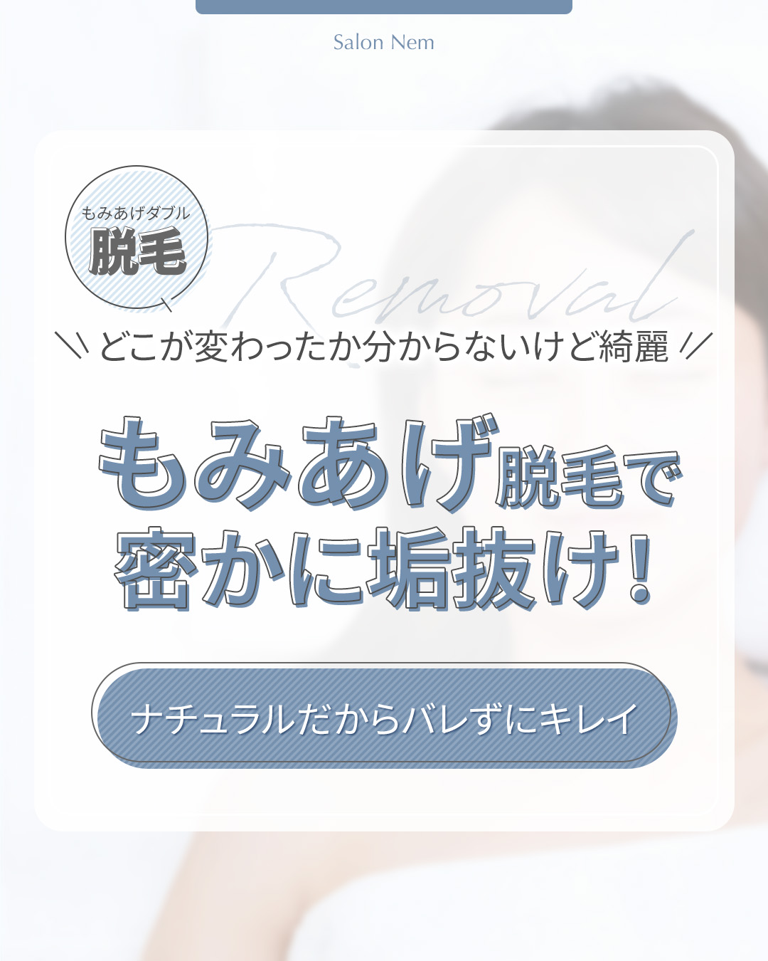 耳にかけた時に気になる「もみあげ」、プロに任せてみませんか?サロンネムは【ワックス×光】のダブル脱毛とこだわりのデザインで、不自然さを出さずにスッキリ垢抜けた横顔を演出します。自己処理が難しい箇所だからこそ、理想の仕上がりを叶えます。
