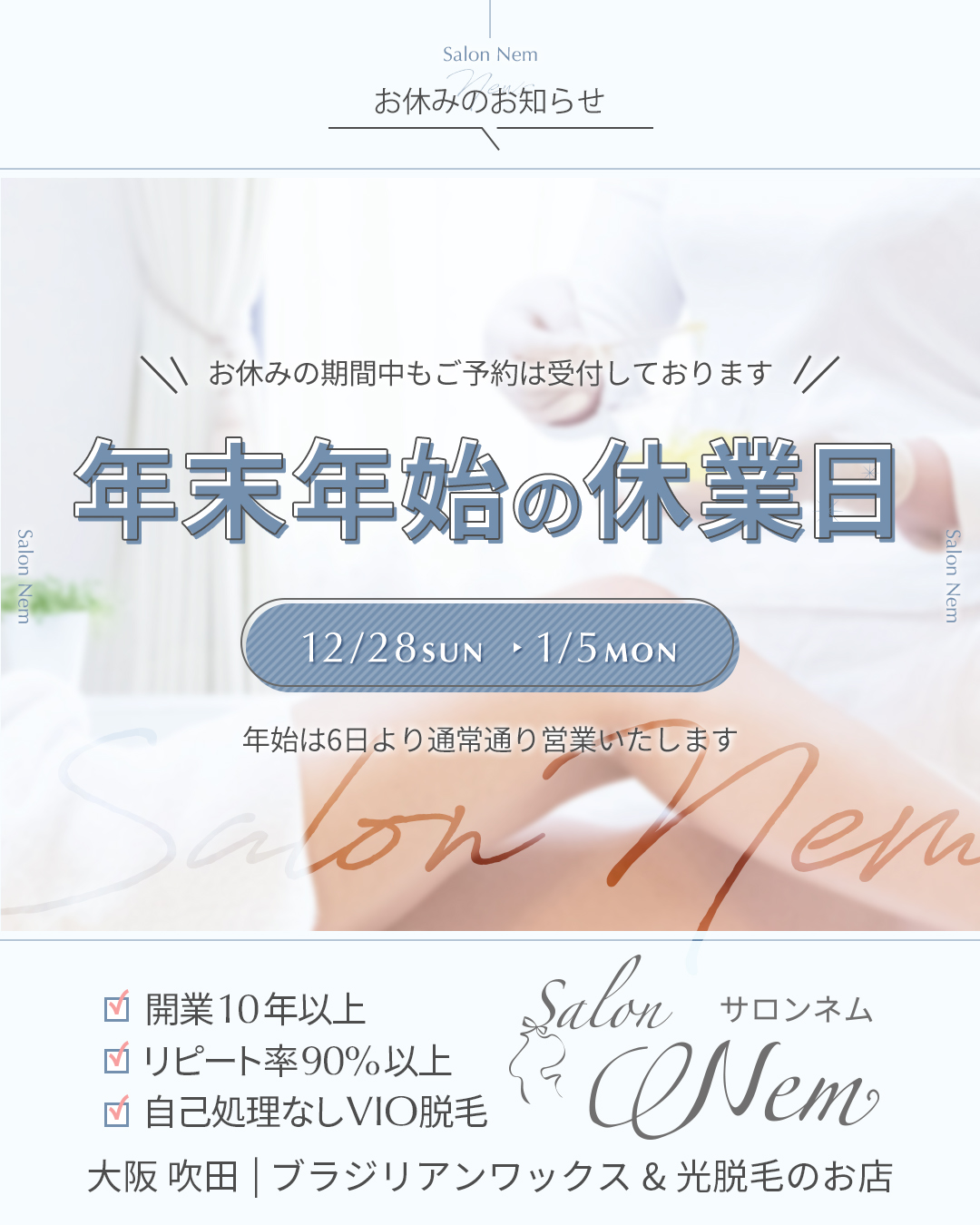北摂 ブラジリアンワックスと光脱毛|サロンネム吹田