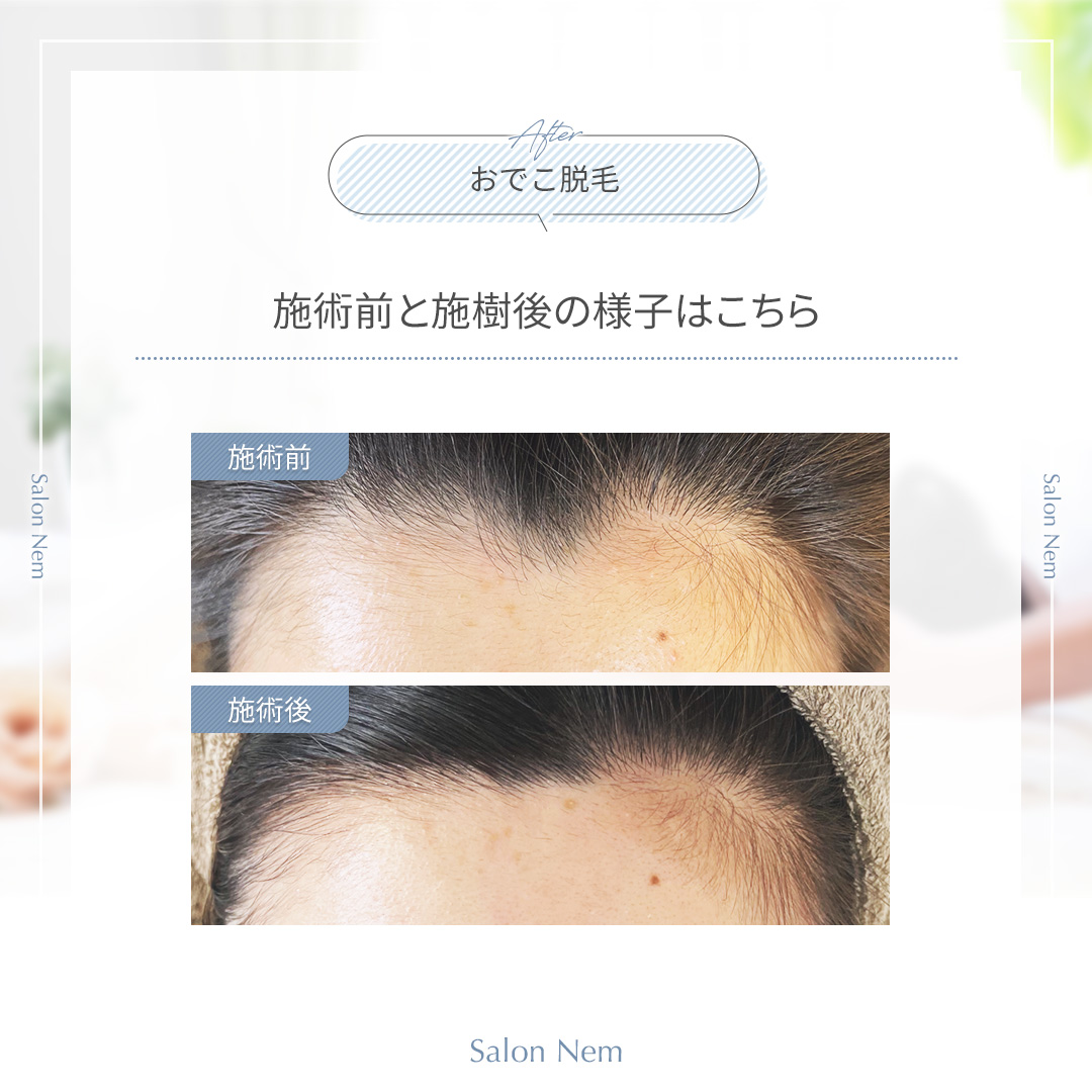 生え際をワックスで処理+おでこの産毛脱毛+おでこ全体に光を照射することでトーンアップ